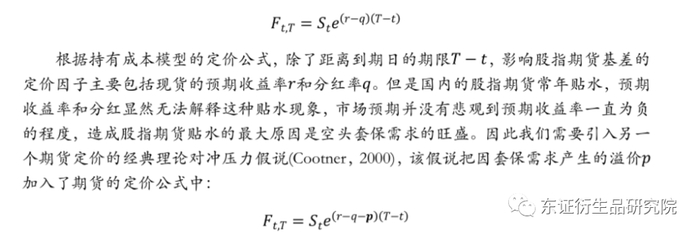 首先,根据广为人知的无套利假设与持有成本模型(Cornell and French,1983),股指期货定价的是合约到期时标的指数的价格: