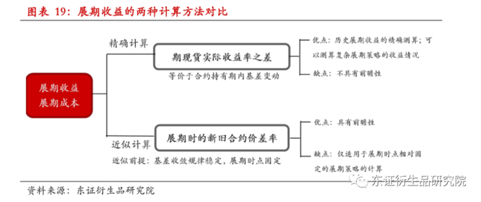 两种展期收益的计算方法各有优劣。根据期现实际收益率之差计算,可以实现对历史展期收益的精确测算,也可以测算复杂展期策略的展期收益情况;新旧合约的展期价差对未来的基差收敛情况具有一定的前瞻性,但是仅适用于测算比较基础的在固定时点朝远月合约展期的策略收益。