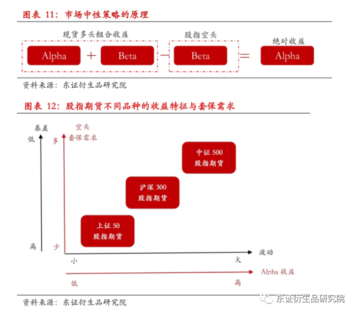 (2)其次是沪深300指数,其成分股偏向大盘蓝筹但是风格更加多样化,选股的alpha收益中枢在10%左右,且符合公募的持仓偏好,因此公募量化对冲基金往往使用沪深300股指期货对冲;