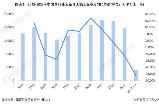 2022年1-4月,中国商品住宅新开工施工面积为39739万平方米,同比下降26.30%。