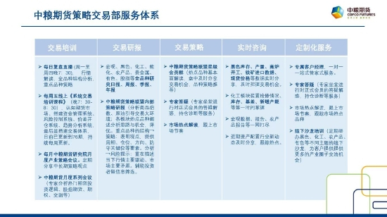 粮期货财富管理团队致力于投资者交易一致性的培养训练、高净值会员的权益孵化,目前承接北京总部策略交易部,已形成相对完善的交易系统和先进的交易理念帮助投资者构建自己的交易系统。