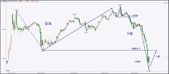 当下,价格在快速释放之后在17000附近遇到买方力量,有回升反弹迹象,可在小周期上分析上涨结构,寻找回调短线做多机会,关注上方18220压力。