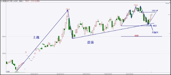 原油的支撑是很明显的,600元一桶是重要的市场心理关口。前期受俄乌战争对国际原油供给的影响,使得价格一路上涨至754元一桶,在俄乌战争前景没有十分明朗的前提下,价格想要再次回到600元以下,是得不到市场认可的。因此,如果价格后市测试600元附近的支撑区,是非常合适的买入机会。