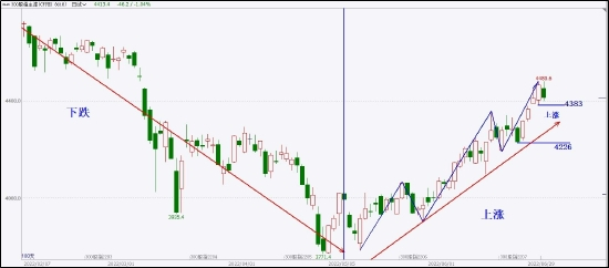 沪深300股指从3771开始,逐渐从之前下跌的环境,走出一波徘徊震荡的上行节奏,3771也从日线上的局部关键低点升级为周线上的关键低点。因此,后市需要重点观察从3771开始的上涨段的趋势节奏。