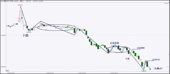 沪锡的下跌节奏保持良好,下跌-震荡不断交替出现,推动市场重心持续下移,空头趋势的力量不断释放。当下价格脱离最近的震荡徘徊区,从256000开始回复下跌趋势,并在189600形成一个阳线底分型,成为局部的拐点。今日价格大幅下跌,将219370形成阴线顶分型,拐点隔日转换,多空力量焦灼。