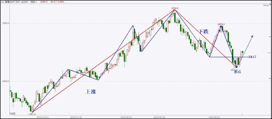 随着价格的持续演化,焦煤的走势结构也在持续更新。在最近半年多的走势中,完成了一个五波上涨和当下一个三波下跌,从目前走势看,三波下跌可作为上涨的次级折返回撤,后市就需要观察2223止跌形成的拐点,能否开启新的上涨趋势波段。
