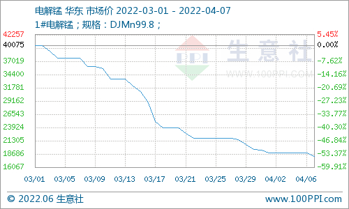 生意社:需求疲软 电解锰价格半年内大跌57.85%