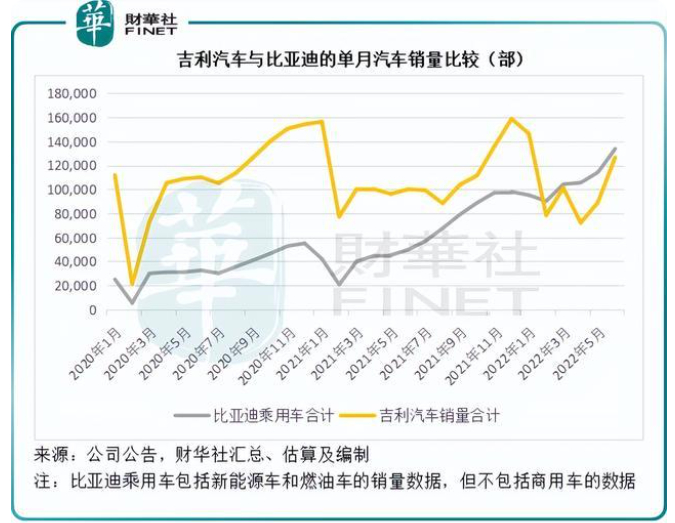 港股上市的吉利汽车(00175.HK)最近公布了2022年6月总销量(含合资公司领克及睿蓝),同比增长26.39%,至12.66万部,增长表现看来不错,与比亚迪(002594.SZ,01211.HK)的总销量13.40万部,相差约7400部。