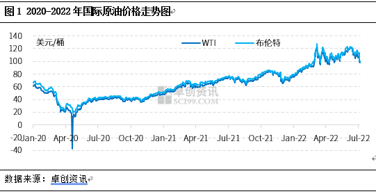 2022年上半年,原油呈现震荡上行的走势。2022年第二季度,原油整体波动区间在95-125美元/桶之间。与去年同期相比,整体运行区间上移。从同比来看,处于近三年同期高位。一季度,WTI期货均价为94.29美元/桶,二季度WTI均价涨至108.53美元/桶,环比上涨15.1%,同比上涨64.2%。