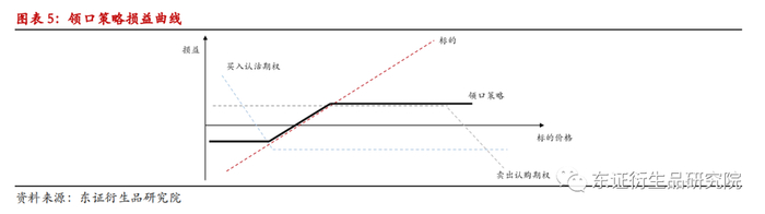 但要注意一点是正是因为卖出认购期权对冲了成本,但是也锁住了上方的收益,因此构建领口期权的时候需要及时判断标的行情的走势,若认为短期会出现趋势性上涨的行情,只不过担心黑天鹅或者其他事件的扰动,才买入认沽期权进行保护,那么就不建议采用领口期权策略,采用保护性认沽期权策略即可。