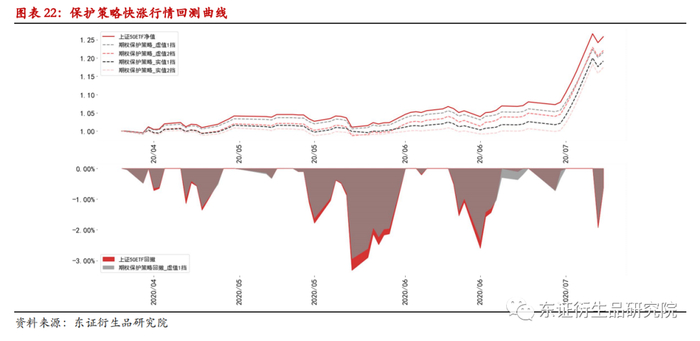快涨行情中,期权保护策略可以保留大部分行情上涨所带来的收益,但是对于最大回撤的保护依然有限。