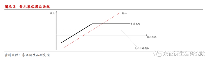 备兑策略:指持有标的的基础上,并卖出标的相对应的认购期权,即持有标的多头和卖出认购期权的组合期权策略。