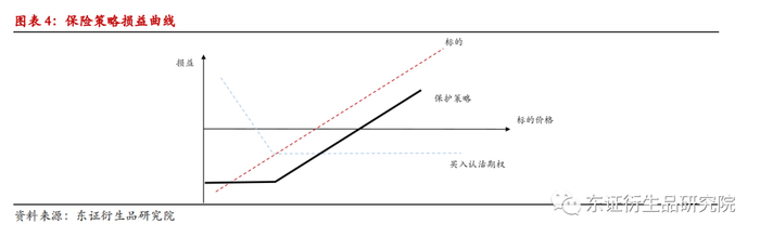 保护策略:当持有或者欲买入标的时,担心标的价格下跌,因此买入相应数量的认沽期权,一定程度上对冲标的下跌的风险。