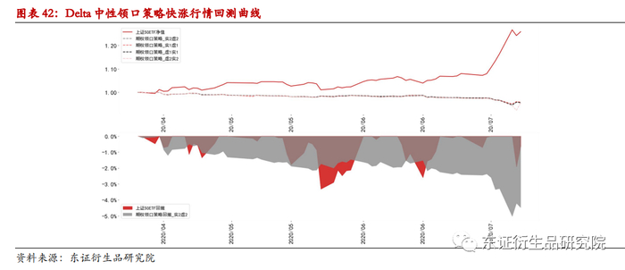 (2)上涨行情,领口期权策略对冲。但在市场大涨时,平掉卖虚值认购期权的头寸。