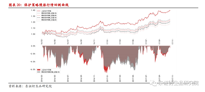 慢涨行情中,由于期权部分头寸(买入认沽期权)难以得到行权,故期权部分多数时候只能作为成本支出,无法带来收益。总体而言,在上涨行情中,并不适用期权保护策略。