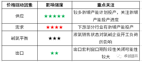 表 影响下半年烧碱价格变化的主要驱动因素及评级表