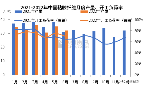 据卓创资讯跟踪,以华东市场粘胶短纤价格为例,2022年上半年粘胶短纤均价为13935.66元/吨,较去年同期14318.85元/吨下降2.68%。今年上半年粘胶短纤价格虽持续上涨,但均价同比下降,对高价液碱接受度不高。