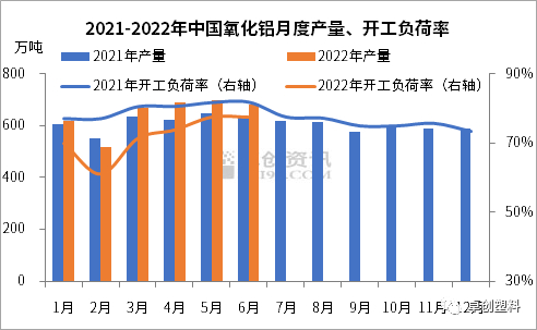 2022年上半年中国氧化铝产量为3873.45万吨,较去年同期3690.74万吨增长4.95%。上半年氧化铝月度产能运行率虽均同比下降,但上半年氧化铝有新增产能投产,因此上半年产量同比增加,对烧碱需求也有所增长。