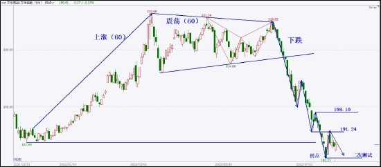 指数在突破去年12月份的低点后,空头力量得到充分释放,紧随其后的强势大阳线形成了左侧分型,且此阳线力度大于下跌趋势内部任何阳线,基本可以断定下跌趋势段结束,期待二次测试低点从而展开双底反转。当下价格受到临近左侧低点191压制出现回撤,且出现局部顶分型,表明市场在震荡中弱势向下盘整,因此空头品种应该重点关注。后市需要观察指数在191-182之间的反复折返情况,等待指数最终突破方向。