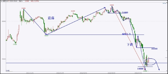 价格在下破18220颈线并短暂反抽后继续单边下跌,最后在测试14000遇到支撑,进入宽幅震荡的格局,大涨大跌扰乱了市场正常秩序。从大周期看棉花的下跌并没有停止,因此尽量选择高位做空的角度介入市场下跌趋势。