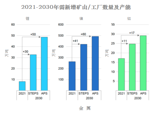 “在APS情景下,到2030年需要新建60座镍矿和17座钴矿,(假设镍矿平均产能38000吨/年,钴矿7000吨/年)”。