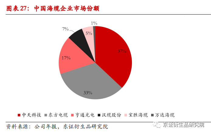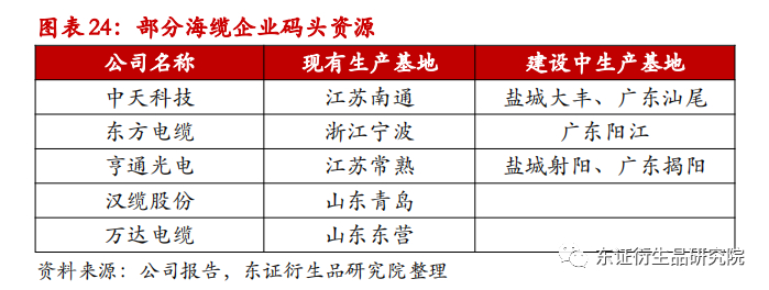 从企业竞争角度看,我们认为海缆企业未来将维持强者恒强的格局,行业龙头中天科技,东方电缆,亨通光电,这三家企业无论是在业绩经验,码头资源还是高端技术上都具备了一定的先发优势,后进入玩家短期内难以突破。