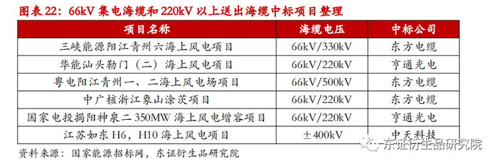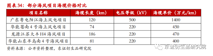 随着海上风电的深海化,远海化发展趋势,为了减少输电损耗和运维成本,远距离输电多采用高压输电,欧洲则广泛采用柔性直流输电技术。根据招标数据显示,220V电压等级的海缆成本一般在400-500万元/千米,而500V的海缆项目,招标价格通常在1000万元/千米以上。海风输电电压提升,海缆单位价格也随之提升。