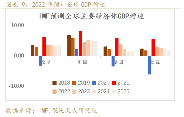 根据IMF预测2022年全球增速为3.6%,较前期下调0.8%;其中中国预计增速4.4%,较前期下调0.4%;美国预计增速3.7%,较前期下调0.3%;欧盟预计增速2.9%,较前期下调1.1%。随着海外通胀高企,美联储加息进程加快,经济衰退预期升温,宏观上利空商品需求。