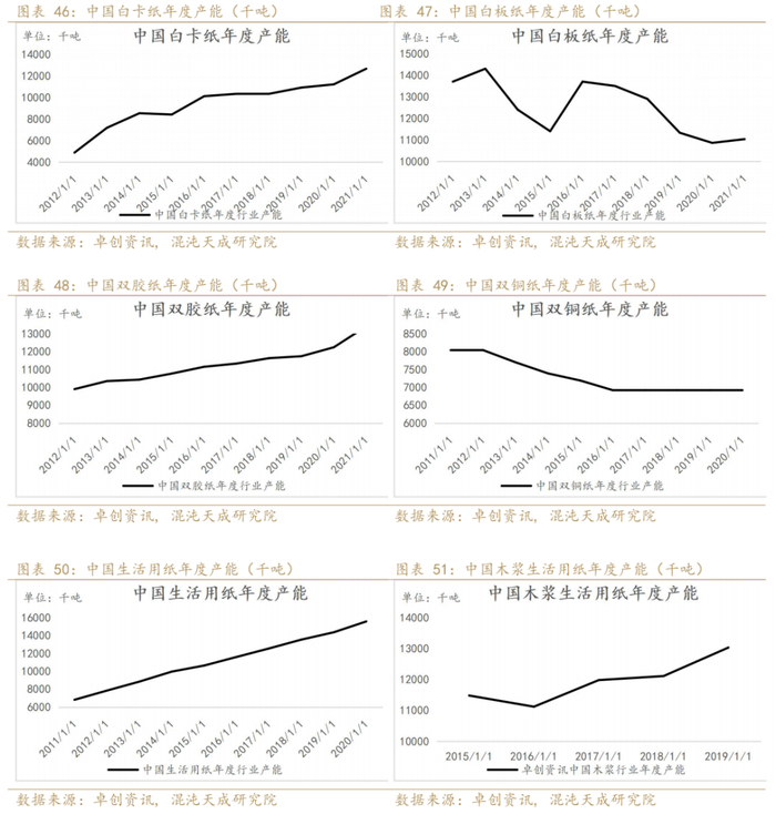 2021年白卡纸、双胶纸、生活用纸产能同比均增加超过10%。