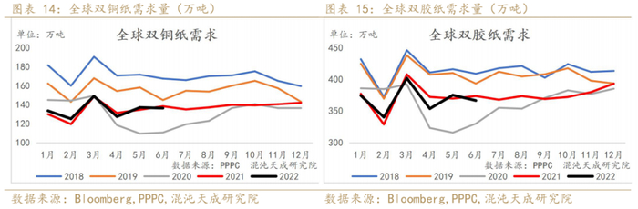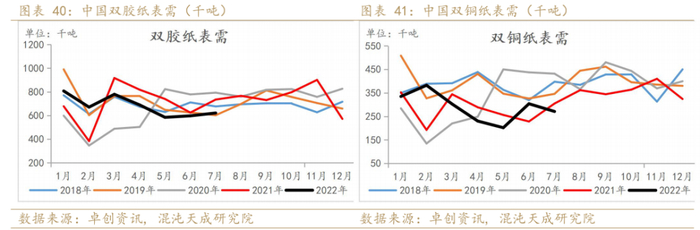 分纸种来看,2022年6月双胶纸和双铜纸的需求同比低于去年。