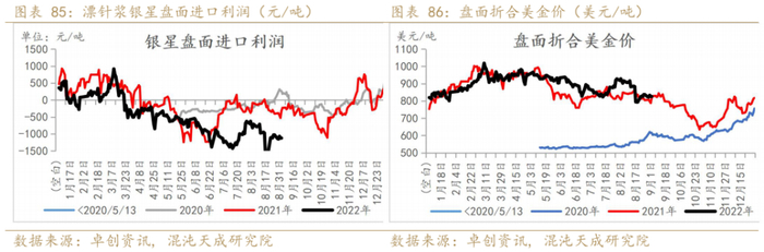 利润:银星报价970美元/吨,较上一轮下降40美元/吨,盘面仍旧是贴水;下游造纸利润仍较差。