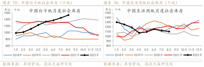 8月白卡纸社会库存增加明显;生活用纸社会库存环比小幅下滑。