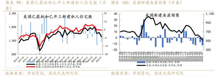 2022年7月美国已获批新建私人住宅数和新屋开工量均小幅下滑;2022年7月新建房屋的销售环比继续下滑,终端需求受到利率上涨的压制明显。
