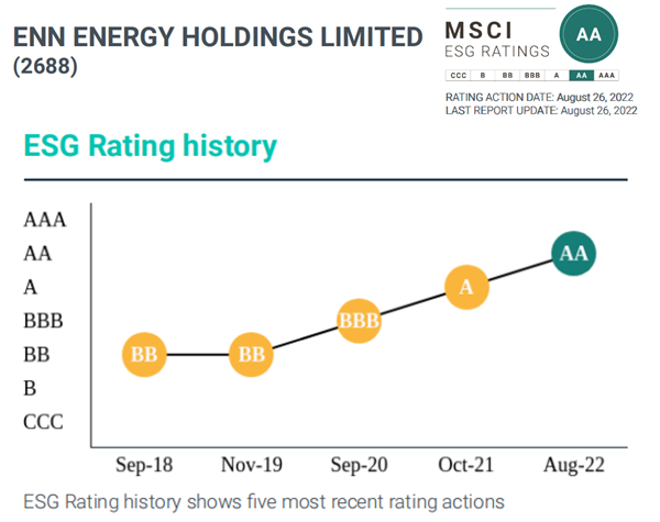 根据全球最大指数公司之一MSCI明晟公布的年度评级结果,新奥能源MSCI ESG评级由A提升为AA级。新奥能源连续四年得到MSCI评级晋升,为大中华区域同行业企业最高评级。