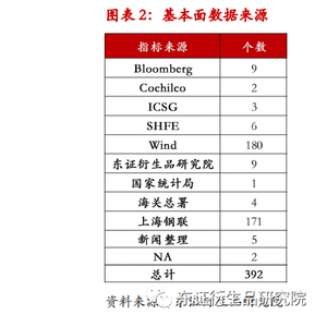 数据收集:本报告数据均来自于繁微数据平台,数据类别包含库存、情绪、原料、终端等数据;指标来源涵盖了Bloomberg、SHFE、海关总署等数据。总数据量达到392个。