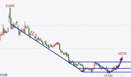 今日铁矿石加速上行,领涨市场,收盘涨幅超3%。日内铁矿价格出现多次加速上行,走势势如破竹,市场关注度较高。回顾一日行情早盘出现持续走强,午后加速上行,尾盘继续高位运行。近两周铁矿多空趋势互换,形成V型反转,短期价格未现明显趋势,选择观望会更好点。