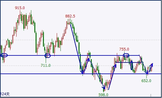 今日文华指数走出深“V”形态,整体价格变化不大。隔夜价格跳空高开,盘中反转加速下跌,午后快速反弹,尾盘低位整理运行,日内呈现多空交错现象。近一个月指数维持均衡区间内运行,价格形成压制。上周连续走弱后,本周价格上涨有限。如果指数宽幅区间整理,选择观望会更好。