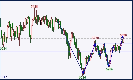 今日纸浆维持上涨趋势,日内价格加速上行状态,多头表现很强劲。回顾纸浆今日走势,隔夜高位回落,早盘价格维持低位整理,午后出现弱势反弹延续至收盘。最终收涨于6796。六月纸浆价格出现崩盘后,价格始终未得到有效的上涨,进入七、八月份有几次反弹,但力度有限。本周价格出现强势上涨,并有效站上前期高点,形成日内与周期多头趋势。今日整体市场弱势背景下,纸浆依旧能维持红盘收尾,这也显示多头很强势。