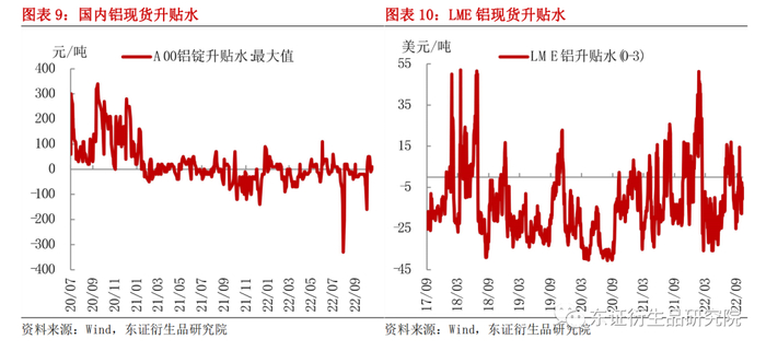 铝:铝市期现正套,以WindA00铝锭升贴水作为参考,可以在平水附近布局正套,考虑到消费总体疲弱,50个点以上可以考虑止盈。同时推荐AL2211/2301跨期正套,建议在价差70以内布局,100以上则可以考虑逐步止盈。