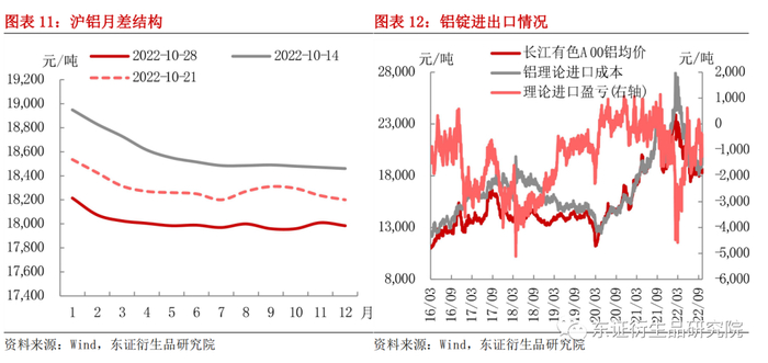 策略方面,11月国内铝锭库存没有累库压力,同时将维持在很低水平,另外国内疫情的问题在一定程度上也影响了国内贸易市场上铝锭流通量,因此我们建议可以参与铝市期现正套,以WindA00铝锭升贴水作为参考,可以在平水附近布局正套,考虑到消费总体疲弱,50个点以上可以考虑止盈。同时推荐AL2211/2301跨期正套,建议在价差70以内布局,100以上则可以考虑逐步止盈。内外盘方面,目前从基本面来看是支持反套的,同时从近期铝锭的进口亏损幅度来讲也提供了一定的反套空间,不过考虑到美国和LME对俄铝的制裁还未落地,因此潜在消息会令该头寸面临较大风险,我们暂时建议内外套利选择观望为主。