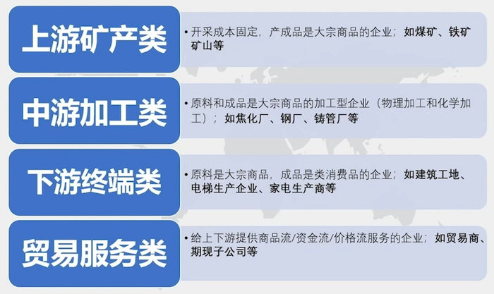 现在我讲第一个就是什么是产业公司。我们的衍生品主要可以服务的对象应该是大宗商品相关的产业公司。大宗商品相关的产业公司,我给它做了一个定义,不是很准确,供大家参考。