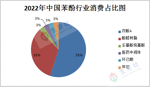 2022年苯酚市场下游消费结构有部分调整,其中双酚A产量240万吨,年内新增加双酚A装置5套,尽管都集中在四季度投产但需求仍占主要,前三季度优势不明显,另一重要下游酚醛树脂年内不温不火,终端行业淡旺季均显冷清,对苯酚需求量有所减少。