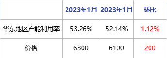 2023年春节前后中国环氧乙烷区域产能利用率及价格变化表
