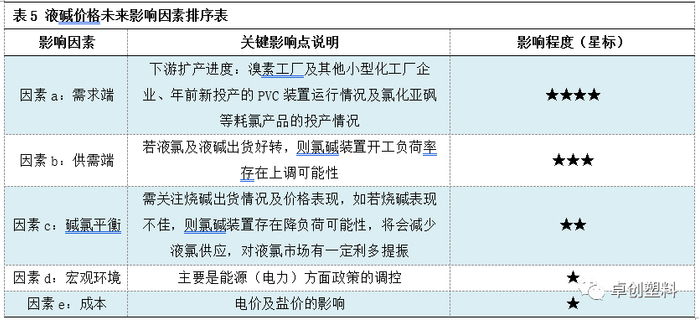 卓创资讯根据市场价格驱动因素,对于未来液氯价格走势主要因素做了重要性排序,如下表所示: