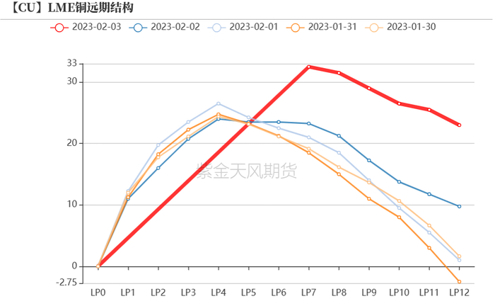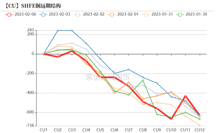 上周,LME库存依然维持较低位置,但国内库存在春节后出现明显累库,因国内炼厂持续发货到库。与往年春节先减后增不同,2023年初库存表现一反常态,消费走弱是累库主因。一方面,2023春节假期相比近五年前置,加之去年年末中国疫情政策放开,社会面阳性覆盖率高,令铜产业企业措手不及,大部分铜下游工厂开启提前放假计划,预计年后开工时间集中于2月上旬,复工时间亦晚于往年同期,侧面说明市场消费不佳。