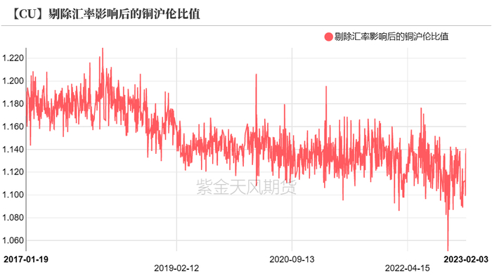 近期,随着人民币汇率大幅波动,沪伦比值维持弱势,进口依然维持亏损,亏损空间有所收敛。后期来看,随着亏损空间收窄,炼厂出口操作空间下降,随着国内消费回暖,比值有望逐步回归,但需谨防进口供应端对国内现货市场扰动。