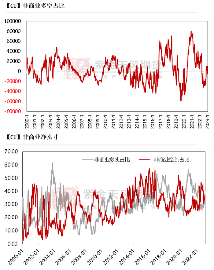从1月24日的CFTC持仓来看,非商业多头与空头持仓占比分别为41.2%、31.8%,多头减少0.9%,空头减少2.3%,市场多空双双减仓。