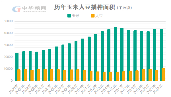 2022年在“稳玉米、扩大豆的”的政策背景下,大豆播种面积达1958年以来最高水平(1.54亿亩,增21.7%),产量405.7亿斤(增23.7%),玉米播种面积减少381.1万亩(降0.6%),产量5544.1亿斤(增1.7%)。