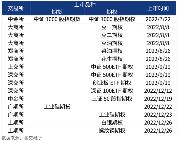 表1:2022年国内期货和衍生品市场上市的套保工具
