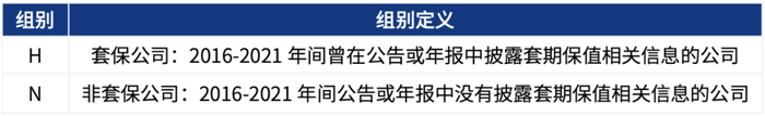 我们通过分组比较的方法揭示套期保值是否能够给公司带来财务上的改善。我们从实体行业A股上市公司中去除2016-2021年间曾有ST等异常状态的公司,将样本企业分成H、N两个组别,其中H组是套保公司组,N组是非套保公司组,组别界定如表6所示。